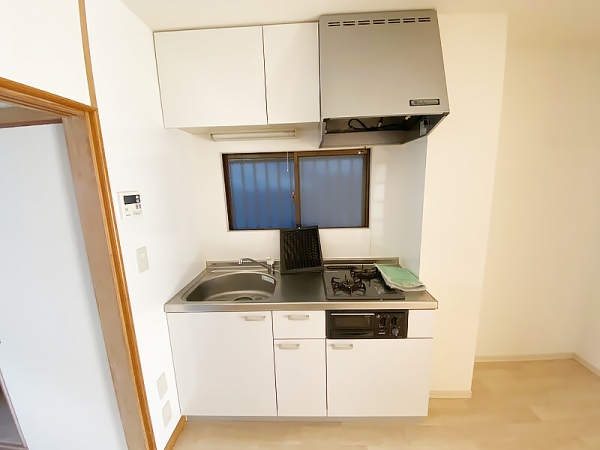 キッチンはビルドイン型グリル付き2口ガスコンロで