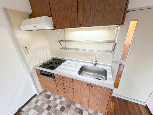 キッチンは、ガスコンロ2口・グリル付き設備です。