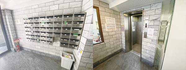 集合ポストが並んだエリアを抜けるとエレベーターがあります。