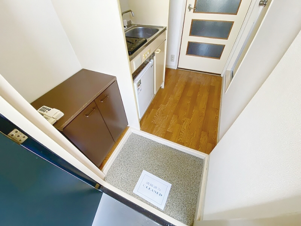 玄関を入ってすぐ、キッチンエリア兼廊下があります。