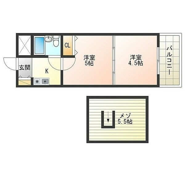 | ロフト付き、敷金なし、二人入居可、最上階 | |