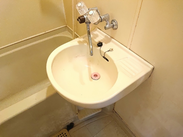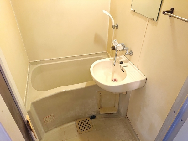左側には洗面台と浴室が一体になった2点ユニットがあります。