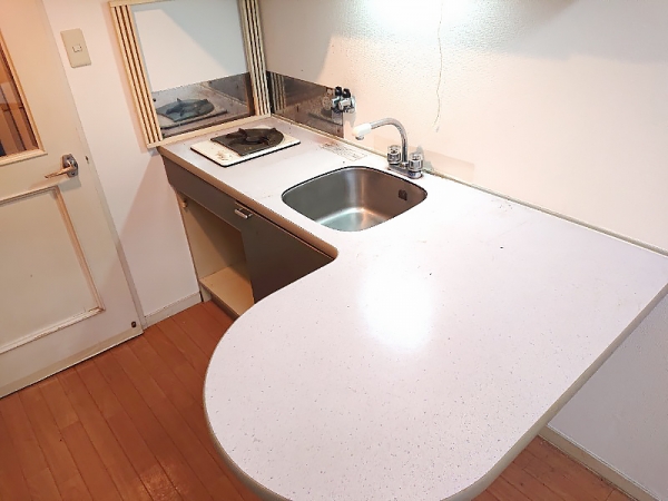 キッチンの設備は、1口ガスコンロのシンプルな仕様。