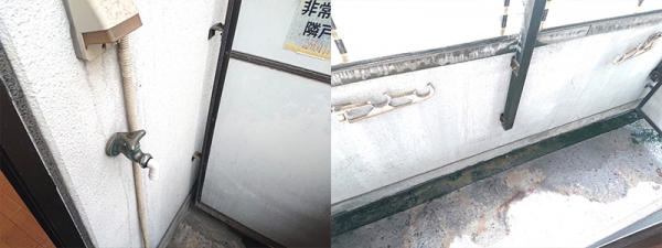 また、バルコニーには水道も設置されており、蛇口の形状からすると