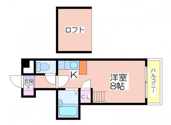 洋室8帖とキッチン+ロフト付きという間取り。