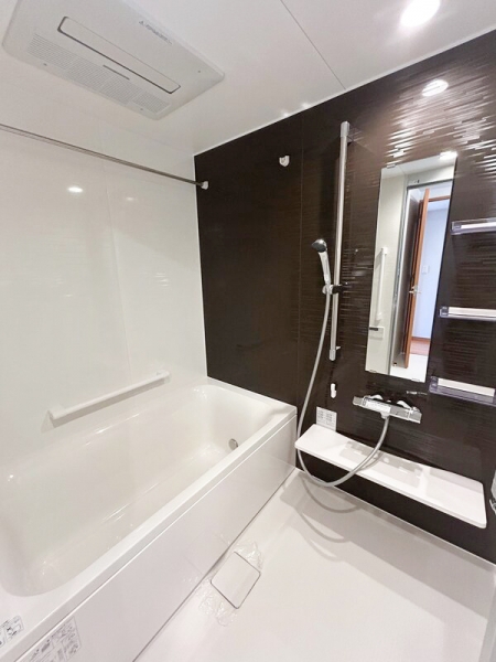 浴室は、ブラウン壁がアクセントな内装になっています。