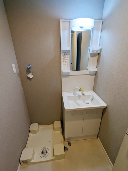 洗面台脱衣所には室内洗濯機置場が並んでおり