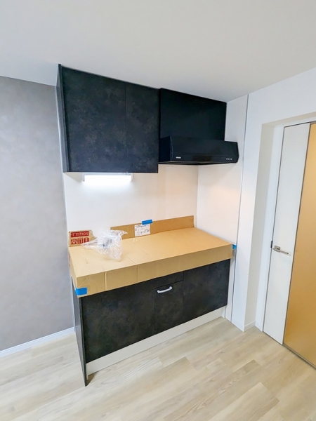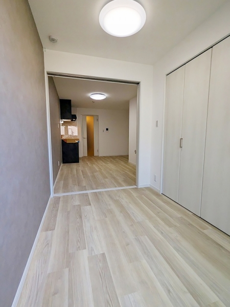 側面にはおしゃれなグレイッシュのアクセントクロス。