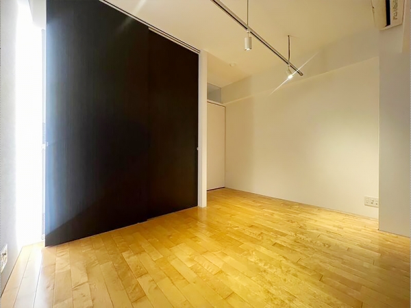 反対側にはブラックな引き戸の付いたクローゼットも。