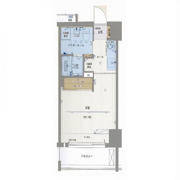 7.1帖の洋室にキッチンからなる間取り。
