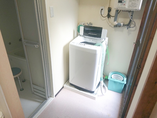 脱衣エリアには、洗濯機置き場もあります。