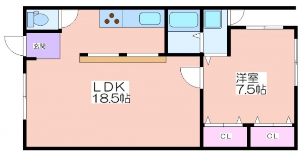 玄関に入ってすぐのエリアは、18.5帖のLDKです。