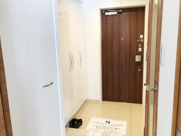 両側には2つのシューズクローゼットと収納棚が備わっています。