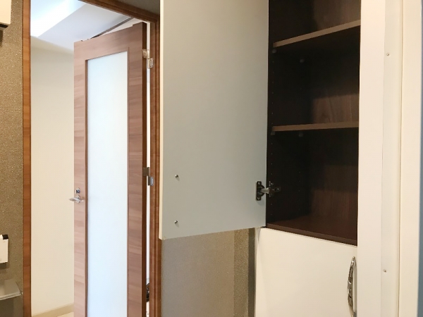 隣にはさらに収納棚があり、収納スペースが豊富です。