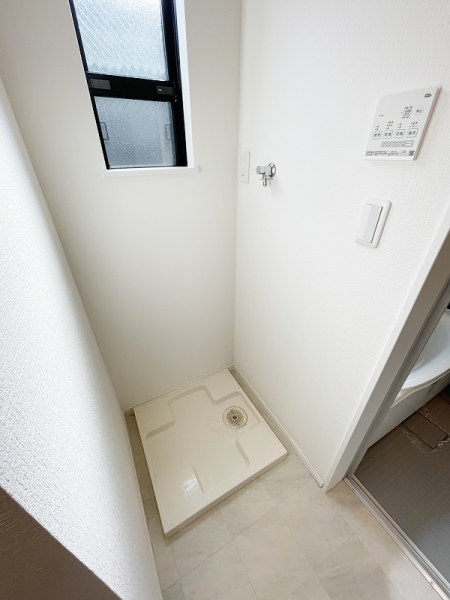奥のバスルーム手前には室内洗濯機置場。