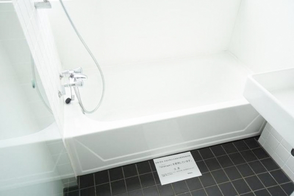 ホワイトな浴槽とブラックタイルな床の