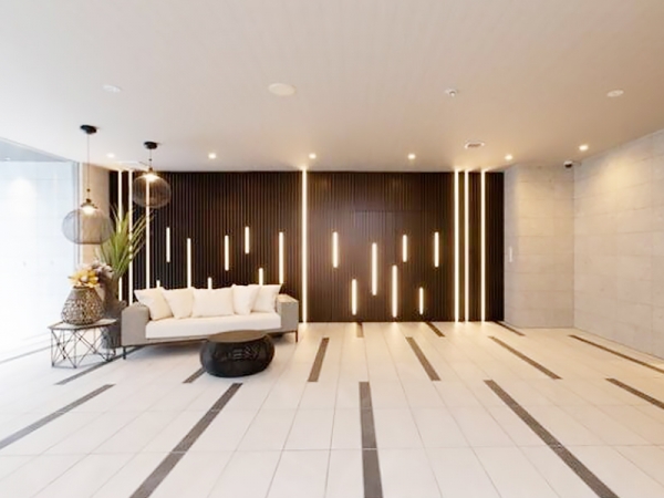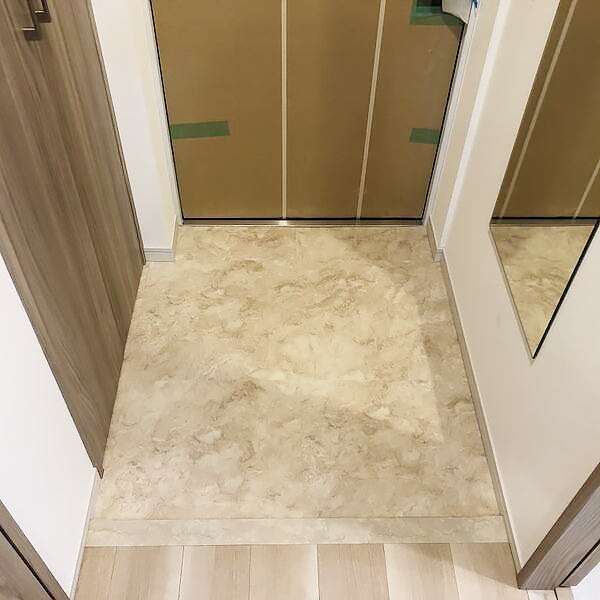 玄関からして広々。大理石の様な床材は茶系でクラッシック。