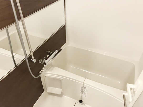一面には鏡付きでホテルライクなシャワーヘッドと