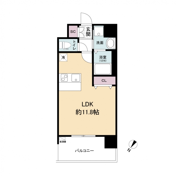 お部屋は最上階11Fに位置する30.4平米のワンルーム。