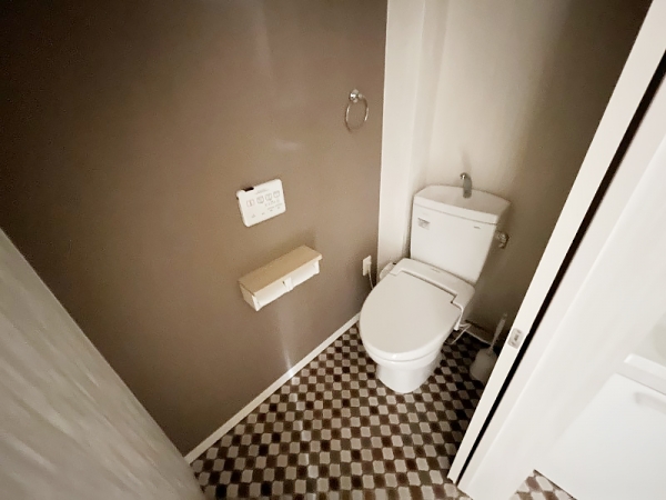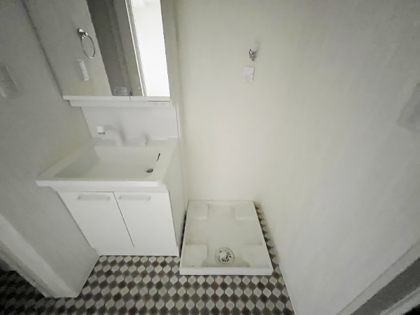 床がおしゃれなダイヤタイル柄が敷き詰められてます。