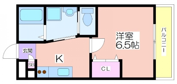 6.5帖の洋室にキッチンという間取り。