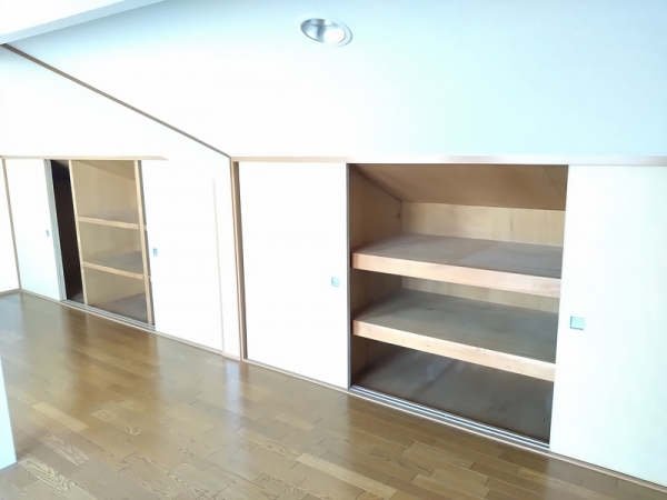 こちらも奥行きがあり備え付けの棚も有ります。