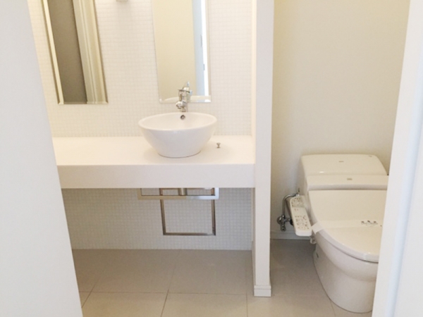 トイレはタンクレスタイプのシンプルで