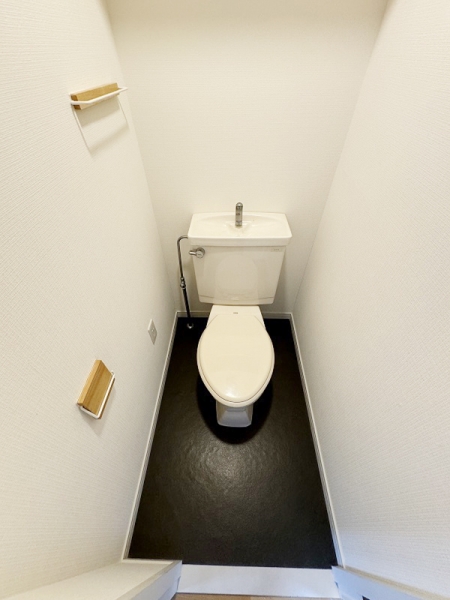 トイレはシンプルで棚がついており