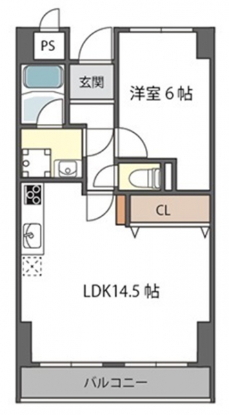 14.5帖のLDKと6帖の洋室が一体となり