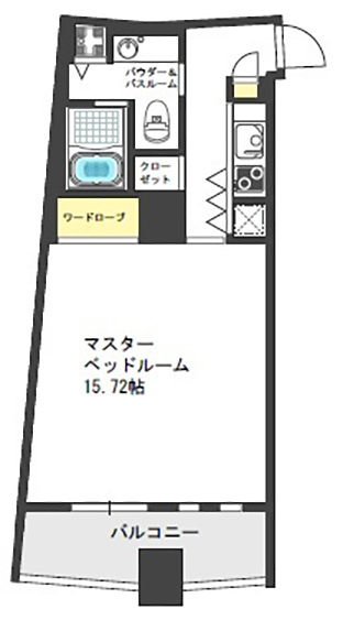 洋室は、15.72帖のビッグワンルーム。