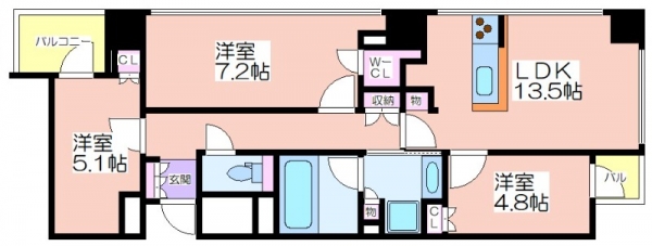 3LDK 専有面積:71.44 ㎡
