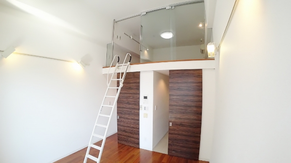 ロフト部分はガラスで囲まれ、開放感のあるデザイン。