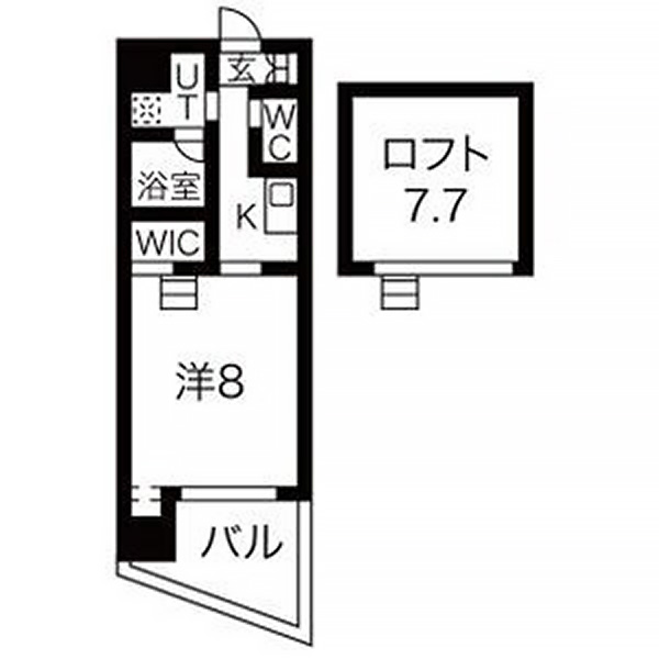 ロフト付きの1Kで、開放感あふれる住空間を提供。