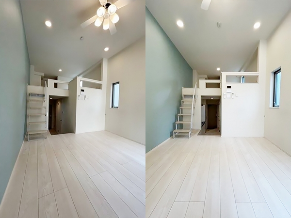 スキップフロアとロフトが生み出す、開放感のある間取り。