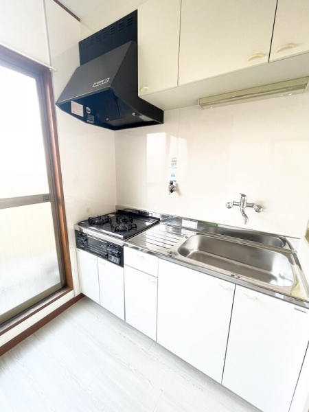 ガスコンロ3口、グリル、シンク、充実した収納と