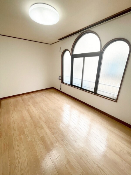 アーチ状の窓が可愛い、レトロモダンな雰囲気になっています。