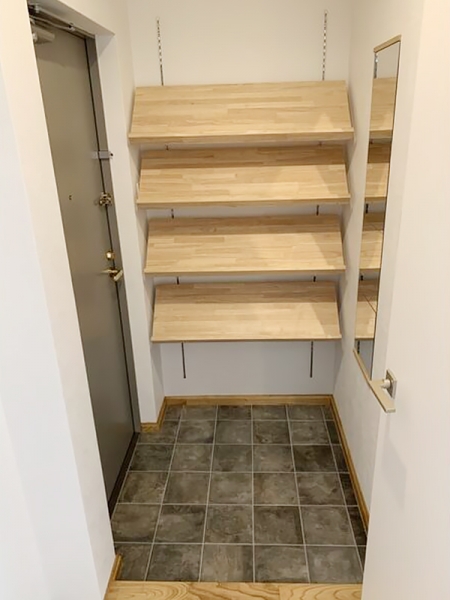 オープンタイプのシューズボックスはナチュラルウッド仕様。