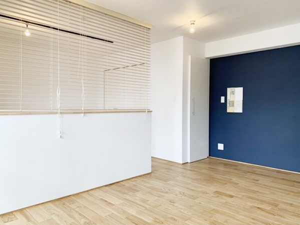 横の壁はネイビーなアクセントカラー。