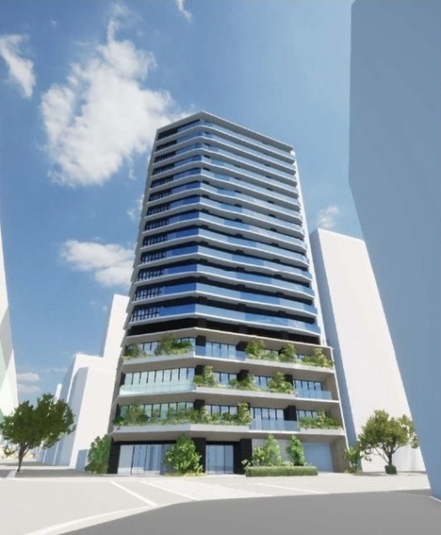 2025年3月築の17階建て新築マンション。