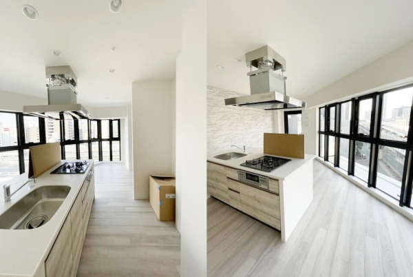 キッチンを囲うような間取りです。