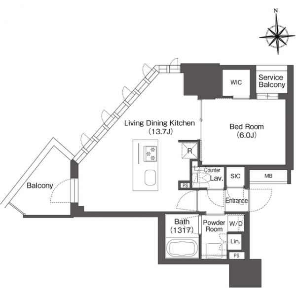 1LDK 専有面積:45.44 ㎡