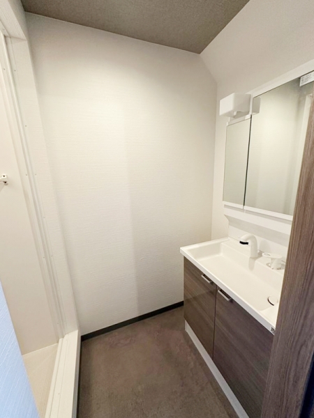 ワイドタイプの三面鏡付きシャンプードレッサー。