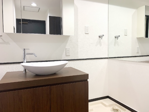 洗面スペースはデザイン性も高いボウル型の洗面台。