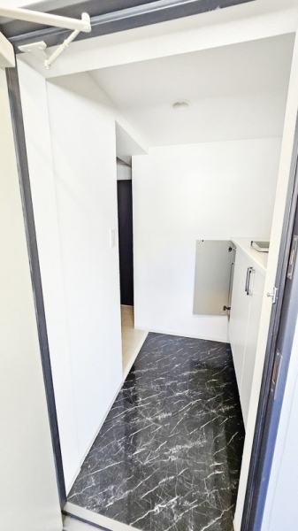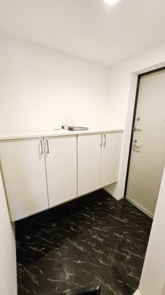 玄関は、明るいモノトーンで、高級感ある内装になっています。