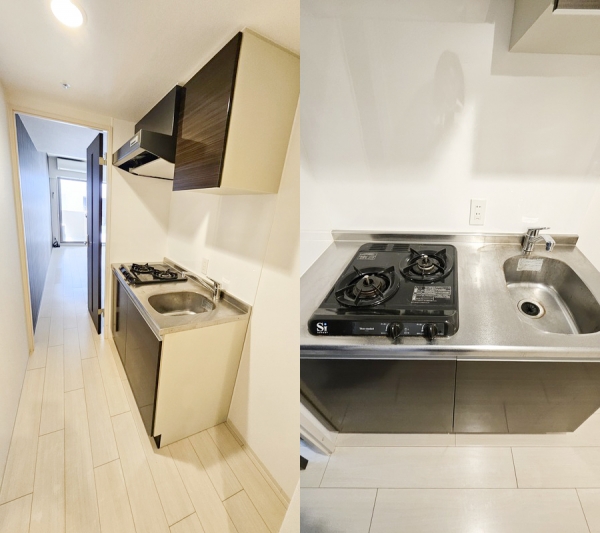 ガスコンロ2口のコンパクトな設備です。