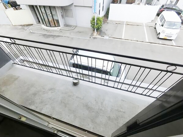 バルコニーはアイアンの格子や屋根に昭和の趣が残りますが