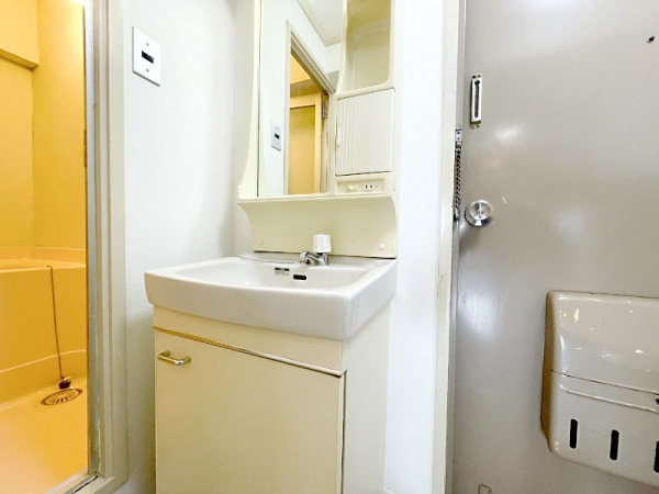 鏡や収納棚もしっかり完備されています。