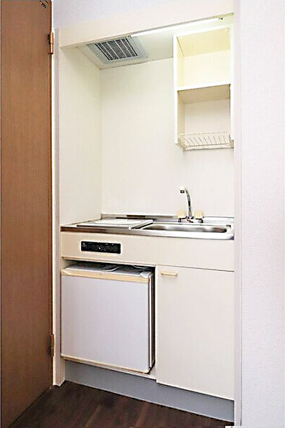 シンク・コンロ・ミニ冷蔵庫を一体化した、