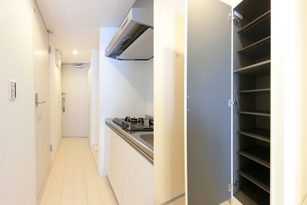 収納やラックを全て隠せる仕様がスタイリッシュです◎