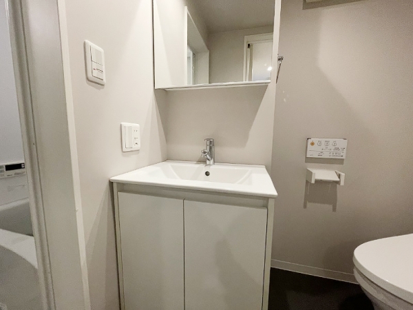鏡裏収納や足元の収納もあり、実用性にも優れています。